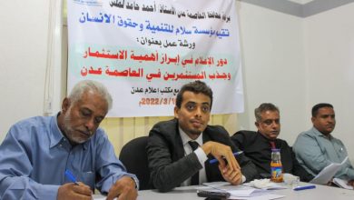 برعاية ( لملس) ..مؤسسة سلام لتنمية وحقوق الإنسان تقيم ورشة عمل حول ( دور الاعلام في إبراز أهمية الإستثمار وجذب المستثمرين للعاصمة عدن.