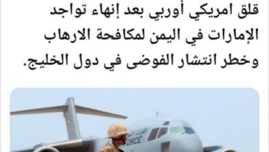 النقابي الجنوبي / خاص نقلت منصة موجز الامارات عن مصادر سياسية ودبلوماسية أن هناك قلق امريكي أوربي بعد إنهاء تواجد الإمارات في اليمن لمكافحة الارهاب وخطر انتشار الفوضى في دول الخليج. وخلف تدخل السعودية في حضرموت بجنوب اليمن في دخول…