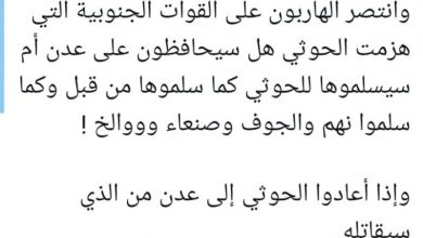 النقابي الجنوبي / خاص اعتبر وضاح بن عطية، عضو الجمعية الوطنية، أن أي احتمالية لنجاح المؤامرات على المجلس الانتقالي الجنوبي، تنتهي بتسليم العاصمة عدن إلى مليشيات الحوثي الإرهابية، ومن خلفها نظام ملالي طهران. وقال في تغريدة على حسابه بموقع التواصل…