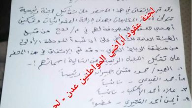 النقابي الجنوبي /الحج / خاص جرى صباح اليوم السبت الإتفاق بمحضر رسمي بتشكيل لجنة رئيسية تعني بمتابعة حقوق المواطنين ممن صرفت لهم عقود من الهيئة العامة للأراضي في م/لحج. ونص الإتفاق على أن تتولى اللجنة أمور المتابعات أمام كل…