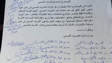النقابي الجنوبي / خاص وجه مدراء إدراة الصرف الصحي عدن رسالة الى وزير المياه والصرف الصحي ، ومحافظ محافظة عدن ، ومدير عام المؤسسة المحلية والصرف الصحي في العاصمة عدن مطالبين من خلالها بتغير نائب مدير الصرف الصحي، وذالك بسبب…