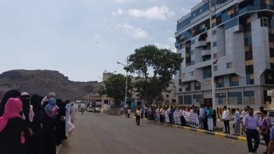 اللجنة التنسيقية للمعينين أكاديمياً في جامعة عدن تنفذ وقفة احتجاجية أمام مقر الحكومة بعدن