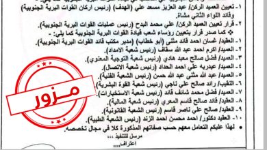 عاجل: مصدر مسئول ينفي صحة الأنباء المتداولة بشأن صدور قرارات عسكرية عن الرئيس القائد الزُبيدي