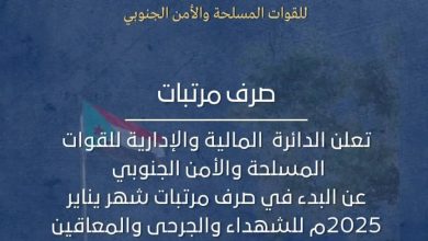 بدء صرف مرتبات الشهداء والجرحى والمعاقين للجيش والأمن الجنوبي اليوم السبت