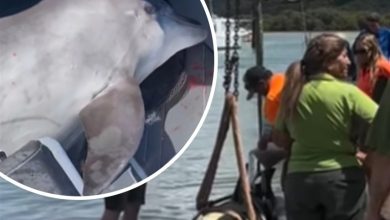 ورد الآن.. دولفين بوزن 400 كلغ يقفز على قارب صيد
