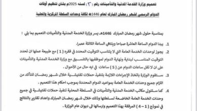 وزارة الخدمة المدنية تحدد ساعات الدوام الرسمي في شهر رمضان 1446هـ
