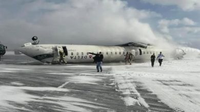 حادث طيران مرعب.. طائرة تنقلب على المدرج أثناء الهبوط!