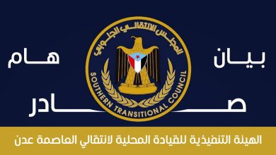 بيان هام صادر عن الهيئة التنفيذية للقيادة المحلية للمجلس الانتقالي الجنوبي بالعاصمة عدن