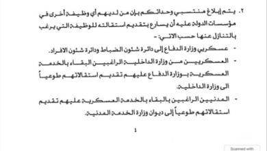 وزارة الدفاع تحذر في تعميم من استمرار الازدواج الوظيفي في الخدمة العسكرية