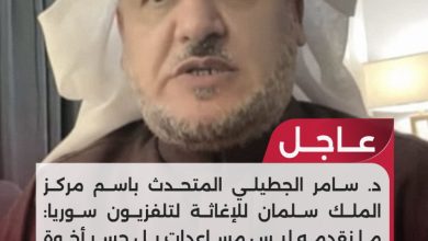 عاجل: المتحدث باسم مركز الملك سلمان للإغاثة د. الجطيلي يدلي بتصريحات للتلفزيون السوري