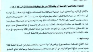 هيئة الفساد تطالب وزير النفط بالتحقق في شحنة ديزل مغشوش أفرغت في خزانات شركة النفط بالمكلا