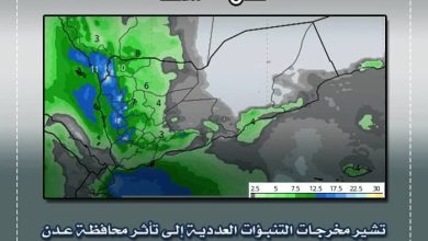 الأرصاد الجوية: تأثر العاصمة عدن بأمطار رعدية خلال الـ48 ساعة القادمة