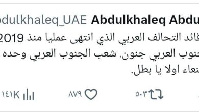النقابي الجنوبي/ خاص نشر الأكاديمي الاماراتي عبدالخالق عبدالله تغريدة بصفحته الشخصية صفحات التواصل الاجتماعي« اكس» وسخر الاكاديمي في تغريدته قائلا: التحالف انتهى في 2019 ومن يقوده عليه أن يذهب لتحرير صنعاء. واشار الدكتور عبدالخالق عبدالله أستاذ العلوم السياسية إلى أن…