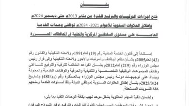 فتح إجراءات الترقية السنوية لموظفي الدولة للاعوام 2013_2024 .. وزارة الخدمة المدنية تقر