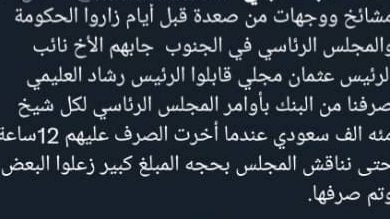 مصدر عامل: رشاد العليمي صرف لكل شيخ من صعدة 100000 ريال سعودي