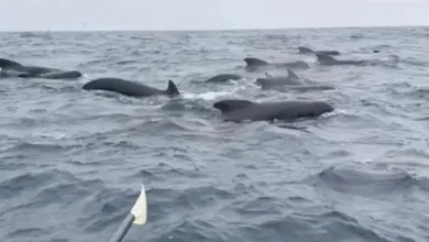 1000 حوت ترافق مغامراً يجدف بمفرده عبر الأطلسي