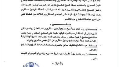 تعرف على القرار رقم (8) الصادر من محافظ سقطرى