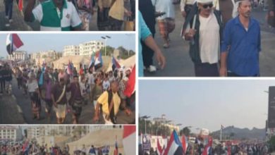 اكبر موكب جماهيري يصل ساحةالاعتصام في العاصمة عدن.. ابين مفتاح النصر.. صور اولية