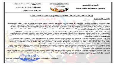 شباب الغضب بوادي حضرموت يؤيدون مخرجات اجتماع الرئيس الزُبيدي