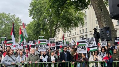مقر الحكومة البريطانية يشهد مظاهرة حاشدة احتجاجا على مجزرة رفح