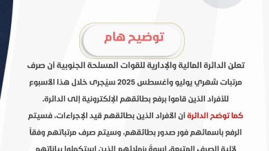 عاجل: الدائرة المالية تحدد موعد صرف رواتب القوات المسلحة الجنوبية
