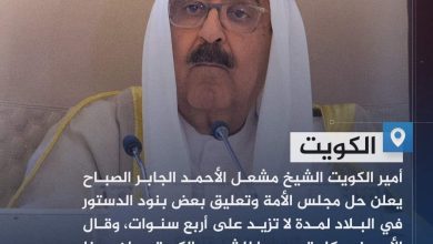 عاجل: أمير الكويت يُعلن حل مجلس الأمة والتعليق على عدد من مواد الدستور لأربع سنوات