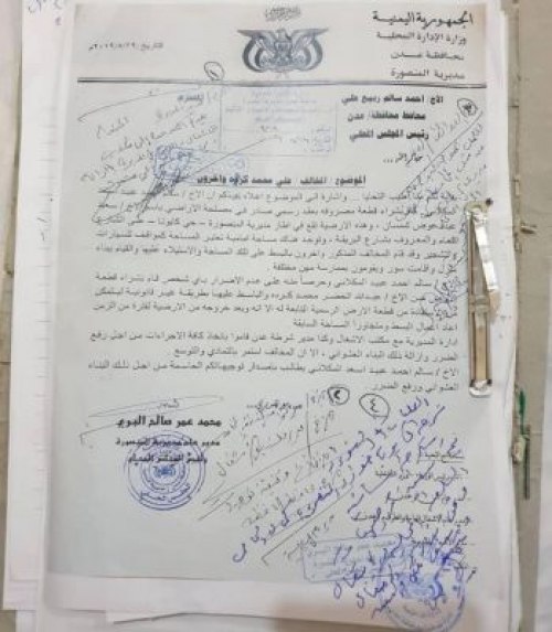 ونشر “زاهر” وثيقة رسمية تحمل طلباً لإزالة بسط عشوائي قام به المواطن كرده على (موقف مخصص للسيارات) ومقدم الطلب سالم احمد عبيد المكلاني، وحملت الوثيقة توجيهات محافظ محافظة عدن احمد سالم ربيع علي (سالمين) ومدير عام مديرية المنصورة محمد عمر البري وتوجيهات مدير أمن العاصمة عدن لعمليات قوات الطوارئ والتي بدورها وجهت شرطة كابوتا، وقوات الحزام الأمني قطاع المنصورة بإزالة البسط العشوائي على الأرض المحددة في طلب الإزالة والتي تعتبر (موقف للسيارات).