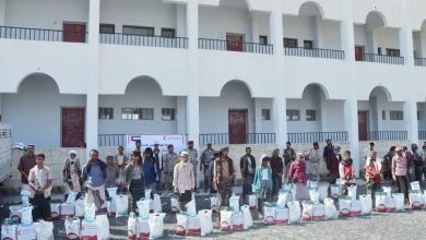 بدعم من الإمارات والعميد نصر اليافعي.. انتقالي المحفد يوزع سلالاً غذائية لأسر الشهداء