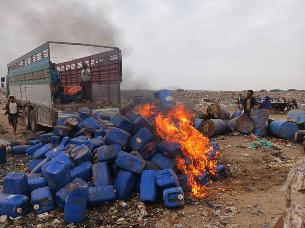 إتلاف ( 10 ) أطنان من المواد الكيميائية والزراعية منتهية الصلاحية في مديرية المنصورة بعدن والداؤودي يشيد