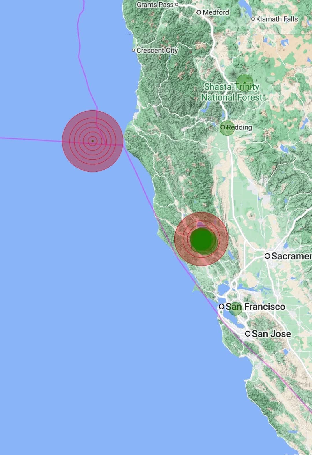 وأوضحت هيئة المسح الجيولوجي الأمريكية، أن زلزال كاليفورنيا، وقع على بعد حوالي 40 ميلاً غرب بلدة بيتروليا، وفقا لما أوردته شبكة سي إن إن الأمريكية.