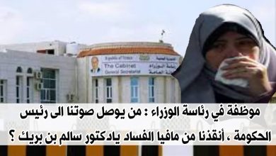 موظفة في رئاسة الوزراء : من يوصل صوتنا إلى رئيس الحكومة ، أنقذنا من مافيا الفساد يادكتور سالم بن بريك ؟