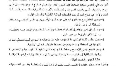 النقابي الجنوبي /الامناء اعلن حزب الاصلاح رفضة القرارات التي اصدرها المجلس الرئاسي بتعيين محافظاً للجوف خلفاً للمحافظ السابق امين العكيمي. وأوضح بيان صادر عن حزب الإصلاح فرع الجوف رفضهم لقرار المجلس الرئاسي بإقالة اللواء/امين العكيمي من منصب محافظ محافظة…