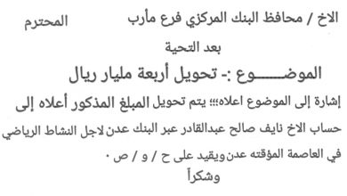 النقابي الجنوبي / خاص وجه جنرال الارهاب نائب رئيس الجمهورية اليمنية علي محسن صالح الأحمر بنك مارب بصرف مبلغ أربعة مليار ريال يمني لصالح وزارة الشباب والرياضة إلى الحساب الخاص بوزيرها الإخونجي نائف صالح عبدالقادر البكري والذي يعد الذراع…