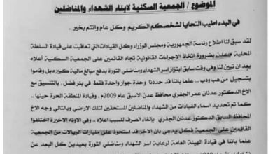 أراضي عدن تحذر المواطنين وموظفي الدولة من استغلال وحيل جمعية سكنية تمارس النصب باسم الشهداء غير قانونية (وثيقة).