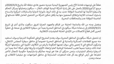 النقابي الجنوبي / عدن/ خاص: كشفت وثيقة مسربة موجهة لنائب الرئيس الفريق على محسن الأحمر من شركة سبأفون ، تفضح مستوى التنسيقات العسكرية لوصول خدمات سبأفون في المناطق التي يسيطر عليها المجلس الانتقالي ، وضرورة تسهيل مهامها لما يخدم…