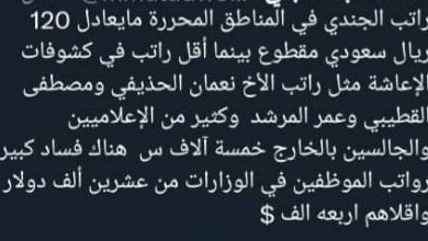 مصدر عامل : موظفون في الوزارات رواتبهم (20000) $ وموظفي الجنوب رواتبهم من( 120) ريال سعودي