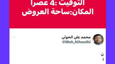الداعشي (عادل موفجة) والرافضي (محمد الحوثي ) يدعوان للمشاركة في ماتسمى بمليونية (عشال) في هذا التوقيت