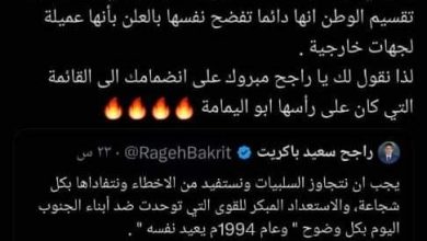 أكد أنه ضمن قائمة الشهيد القائد ابو اليمامة..مغرد يمني يتوعد الشيخ /راجح باكريت بالقتل