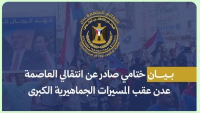 الهيئة التنفيذية للقيادة المحلية للمجلس الانتقالي الجنوبي بالعاصمة عدن تصدر بيان ختامي عقب المسيرات الجماهيرية الكبرى