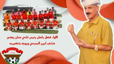 *القائد(باعش) يهنئ منتخب ابين المدرسي بمناسبة حصوله على لقب البطولة المدرسية ويوجه إدارة نادي حسان بتكريمهم*