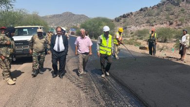 محافظ الضالع يطلع على سير العمل في مشروع إعادة تأهيل وسفلتة نقيل الربض