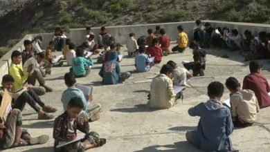الضالع..أشعة الشمس تلفح أجساد طلاب مدرسة أسامة بن زيد تورصة بالازارق أثناء تاديتهم امتحاناتهم الفصلية