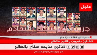 جريمة لن تسقط بالتقادم.. اطلاق حملة الكترونية جنوبية في ذكرى مذبحة سناح الضالع