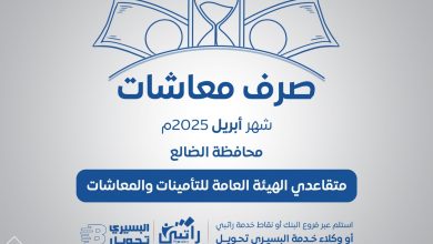 هيئة التأمينات فرع الضالع تعلن صرف مرتب شهر أبريل للمتقاعدين