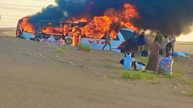 حافلة نقل جماعي تحترق بالكامل في مأرب اليمنية