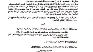 رئيس جامعة «عدن» يصدر قرارا بتغيير مسمى كلية التربية «الضالع» وفتح سبعة أقسام جديدة فيها