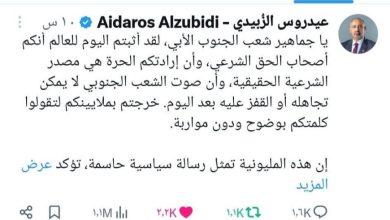 النقابي الجنوبي / خاص حصدت تغريدة الرئيس القائد عيدروس قاسم الزُبيدي رئيس…