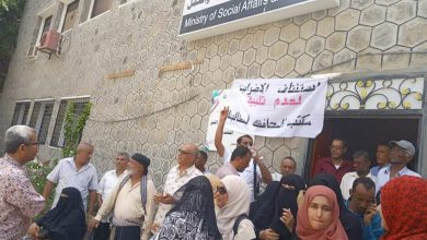 وقفة احتجاجية لموظفي الشؤون الاجتماعية بالعاصمة عدن واعلانهم استئناف الاضراب